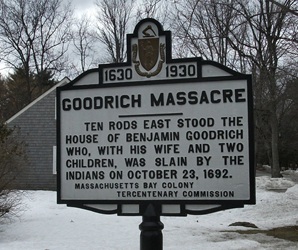 Captain James S Nute was killed by indians in 1691 in Dover, New Hampshire.